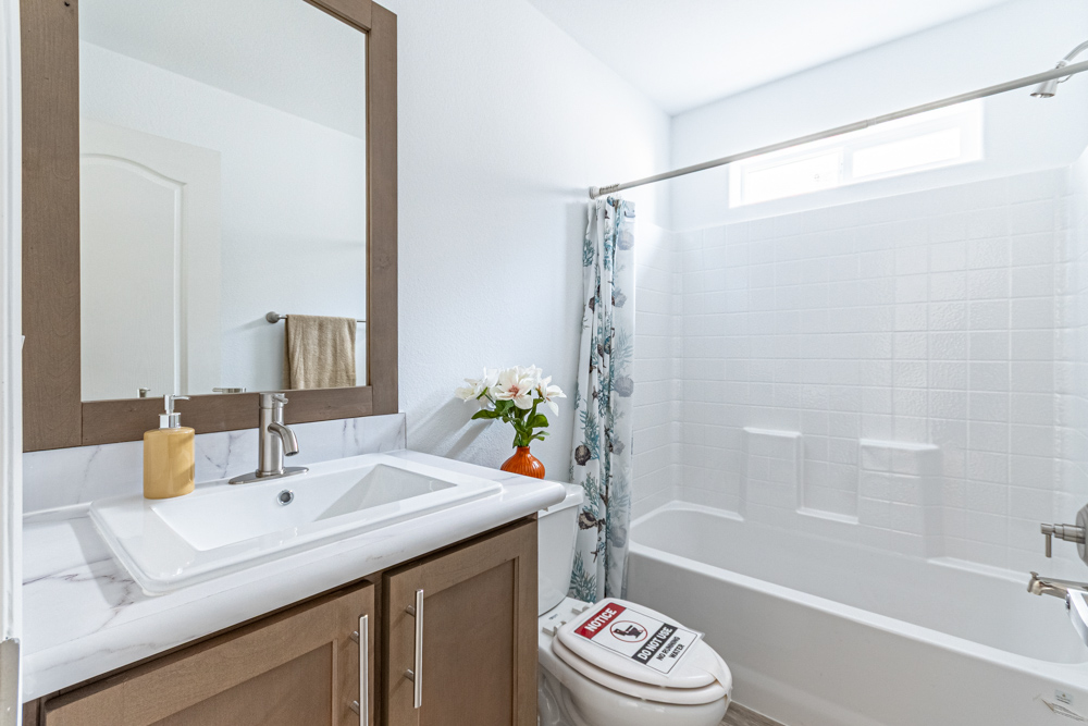 - One-Piece Fiberglass Tub/Shower in Main Bathroom