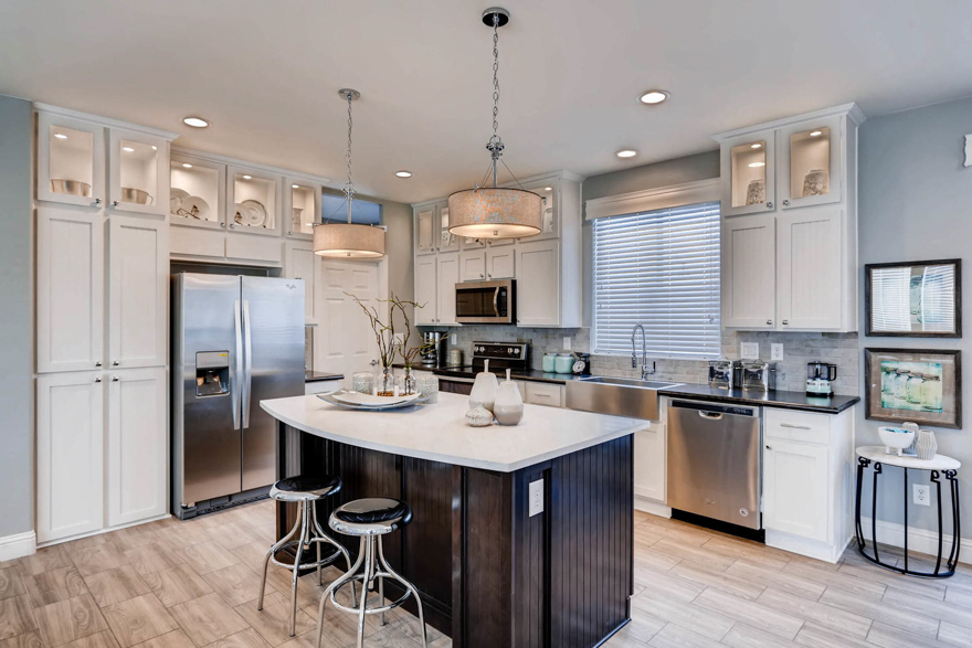 - Premium laminate countertops with crescent front edge and ceramic tile